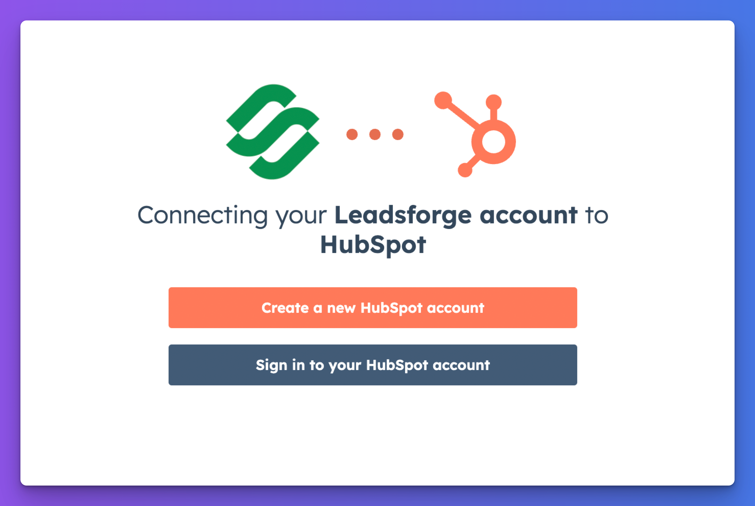 You’ll be redirected to Hubspot, sign in, give permission, and you’re all set.