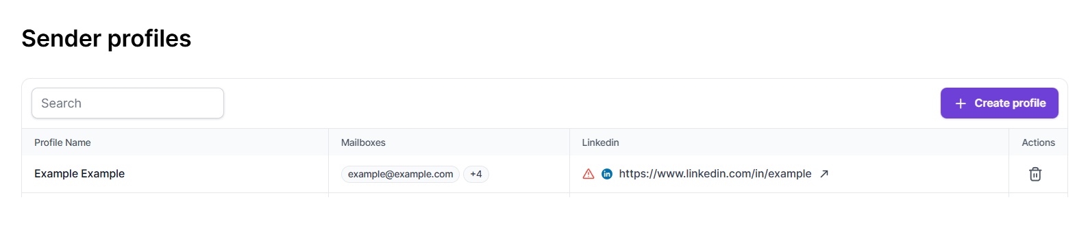 You may also see a triangle warning symbol on your LinkedIn accounts under your sender profiles if they become disconnected.